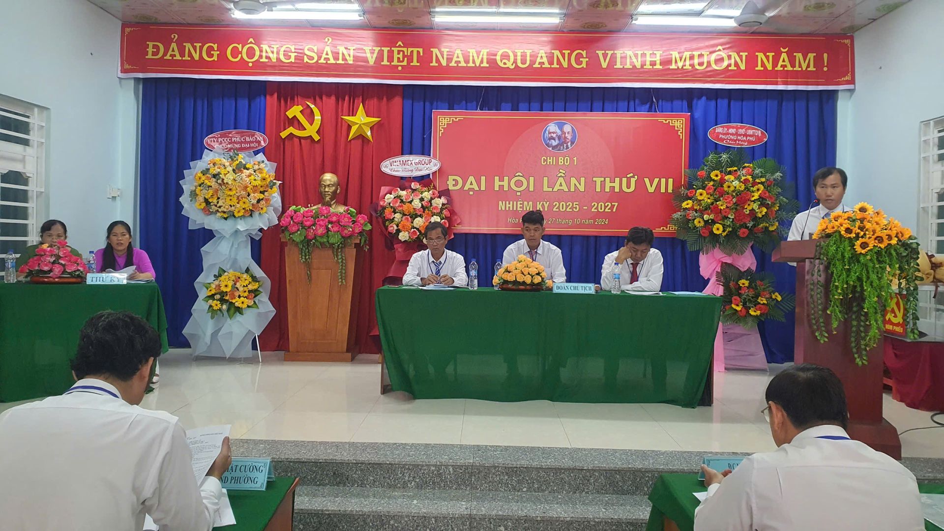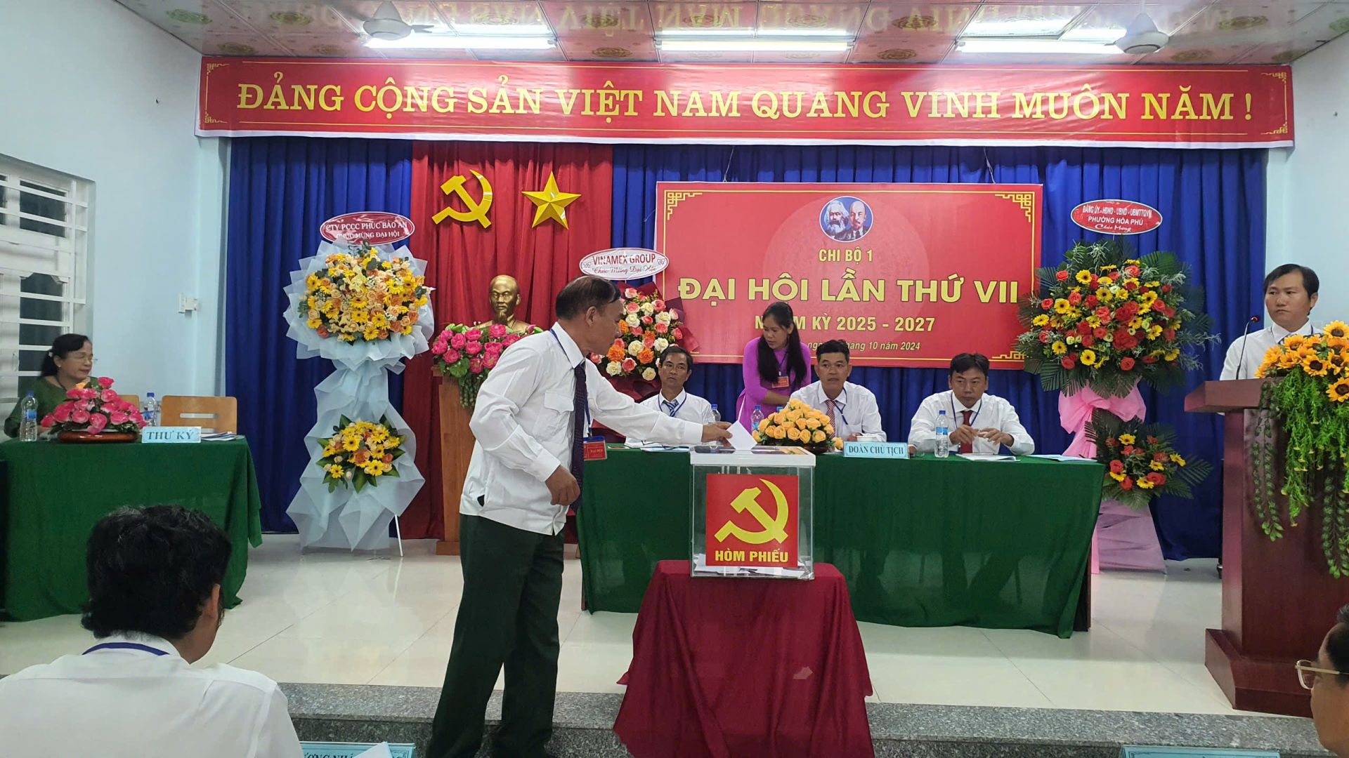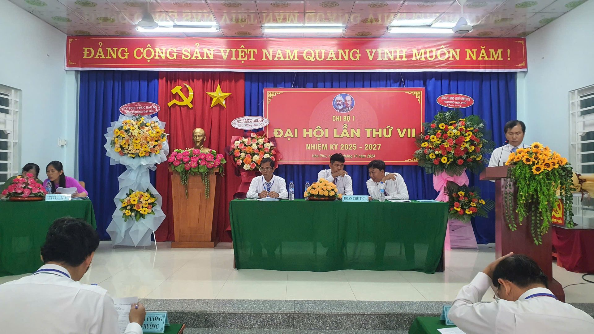 Sáng ngày 27/10/2024, Chi bộ 1 trực thuộc Đảng bộ phường Hòa Phú tổ chức thành công Đại hội chi bộ lần thứ VII nhiệm kỳ 2025 – 2027. Tham dự và chỉ đạo Đại hội có đồng chí Nguyễn Văn Ân – TUV, Bí thư Đảng ủy, CT.HĐND phường, cùng các đồng chí Thường trực Đảng ủy – HĐND – UBND – UBMTTQVN phường; các đồng chí BCH Đảng bộ phường; bí thư các chi bộ trực thuộc Đảng bộ phường và các đồng chí đảng viên chi bộ 1 cùng dự.