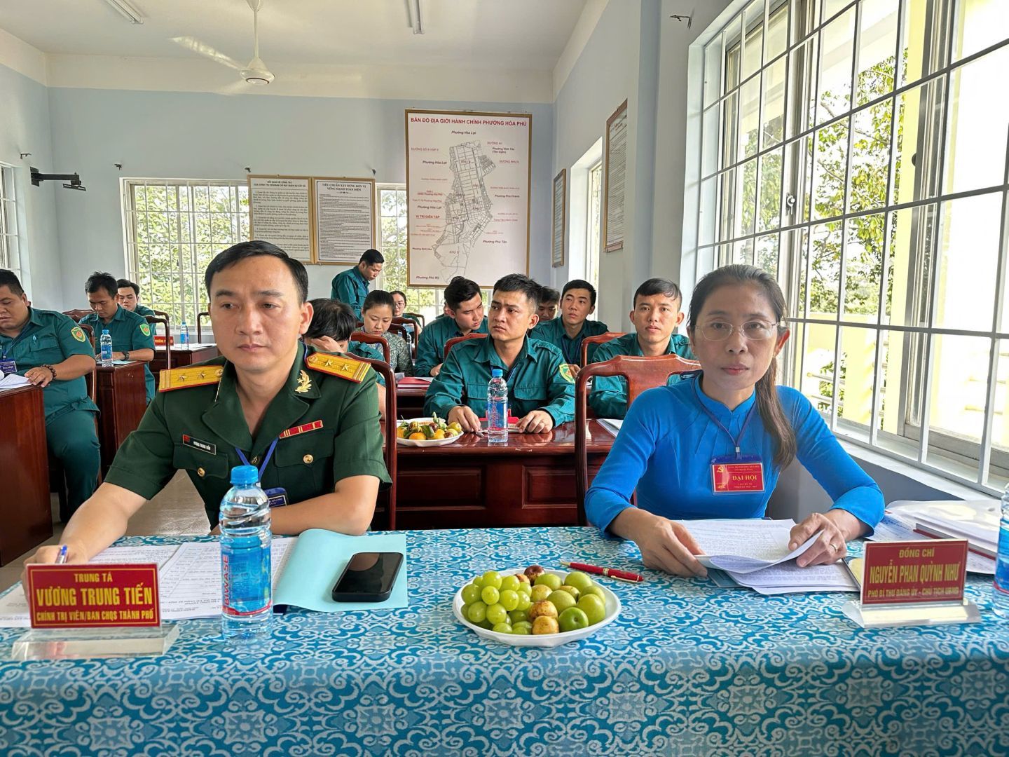 Chiều ngày 25/10/2024, Chi bộ Quân sự trực thuộc Đảng bộ phường Hòa Phú tổ chức thành công Đại hội chi bộ lần thứ VII nhiệm kỳ 2025 – 2027. Tham dự và chỉ đạo Đại hội có đồng chí Nguyễn Văn Ân – TUV, Bí thư Đảng ủy, CT.HĐND phường; đồng chí Nguyễn Phan Quỳnh Như – PBT, CT UBND phường, cùng các đồng chí đảng viên chi bộ Quân sự cùng dự.