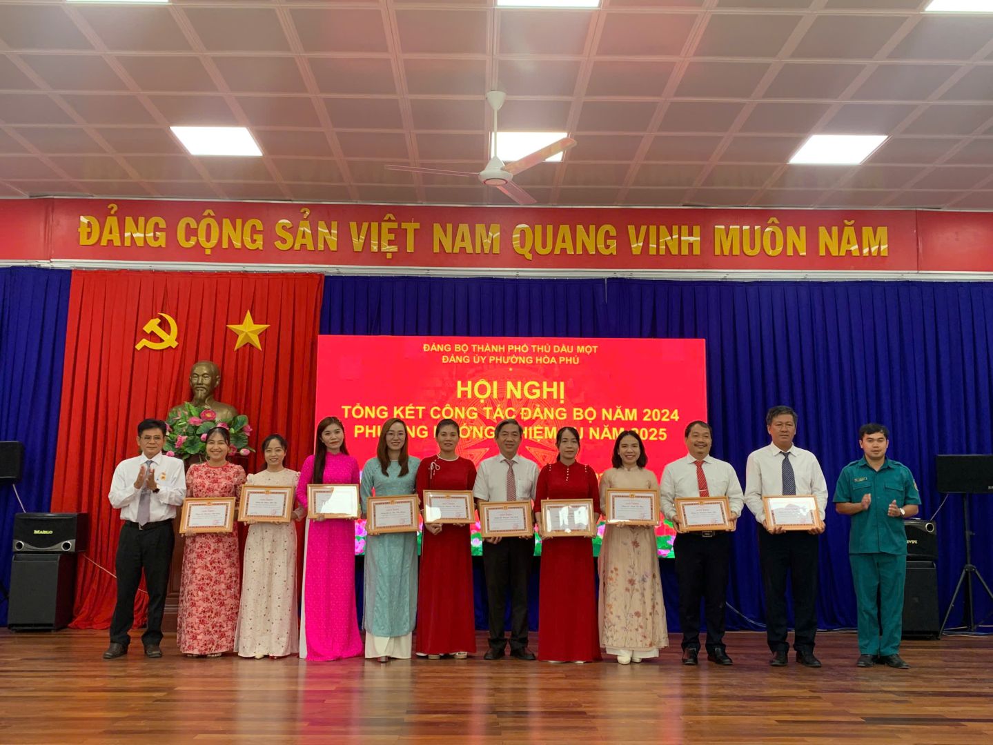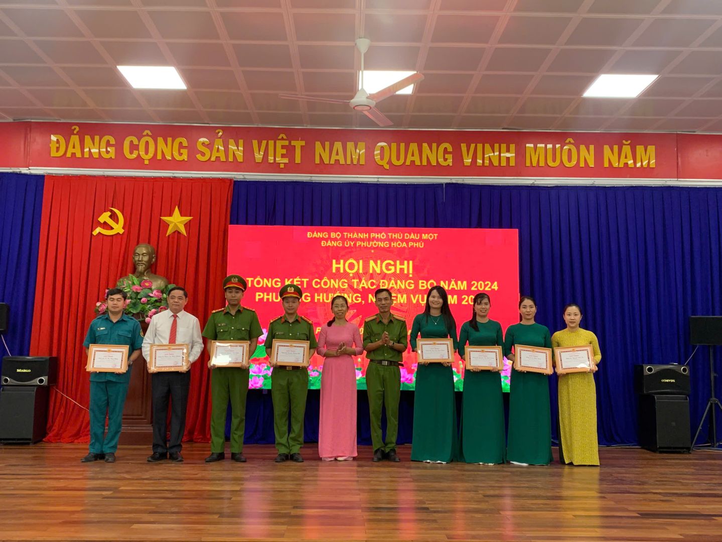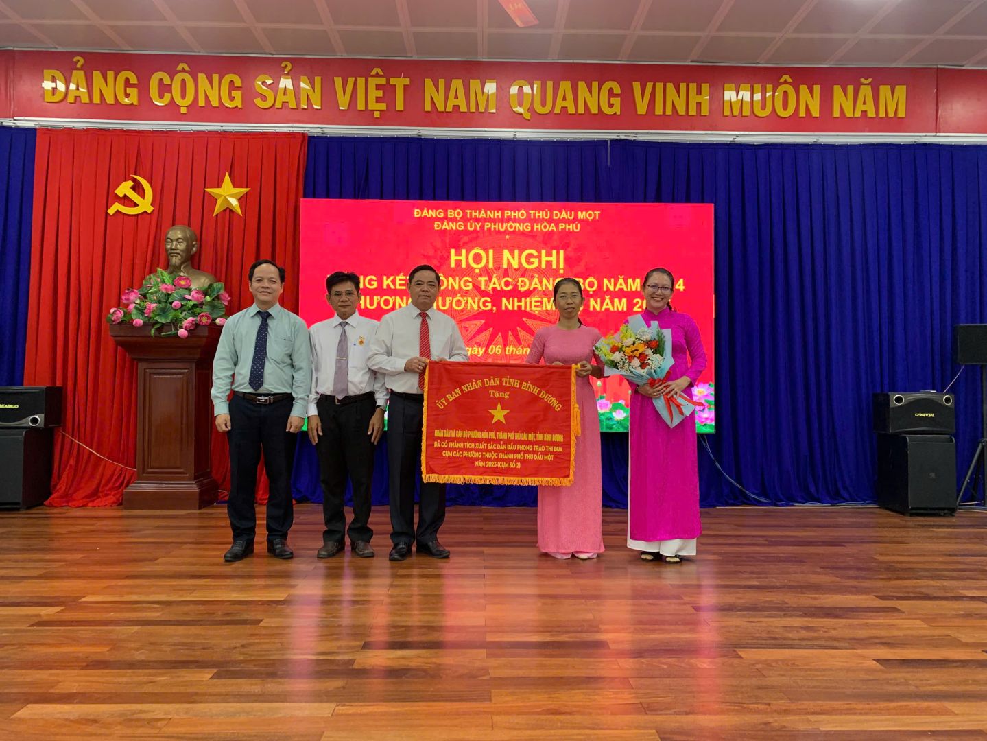 Cũng tại Hội nghị Đảng ủy phường đã nhận cờ của UBND tỉnh Bình Dương tặng nhân dân và cán bộ phường Hòa Phú đã có thành tích xuất sắc dẫn đầu phong trào thi đua cụm các phường thuộc Thành phố Thủ Dầu Một năm 2023 (cụm số 2). Dịp này Đảng ủy phường đã khen thưởng 02 tập thể chi bộ và 53 đảng viên hoàn thành xuất sắc nhiệm vụ năm 2024.