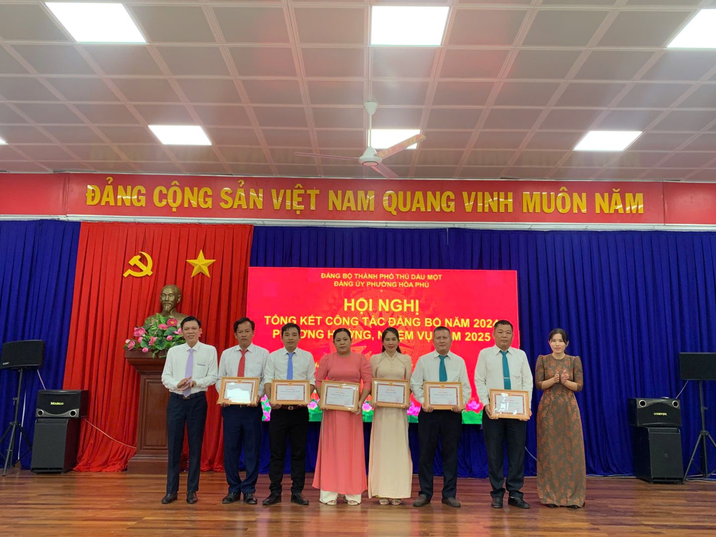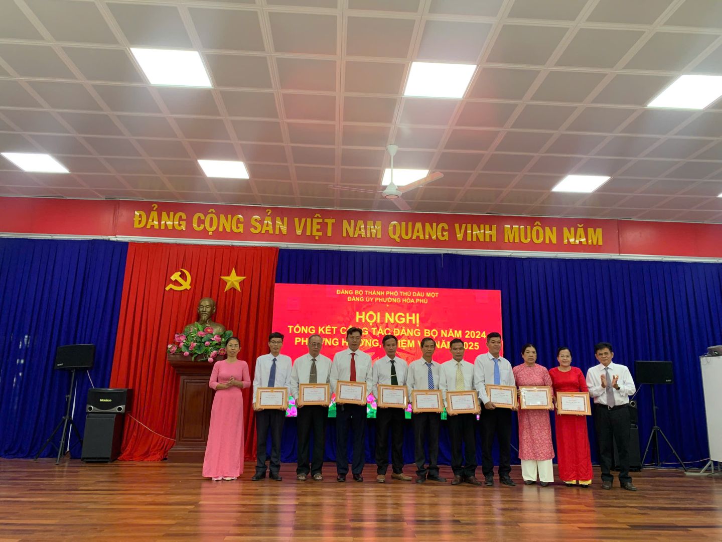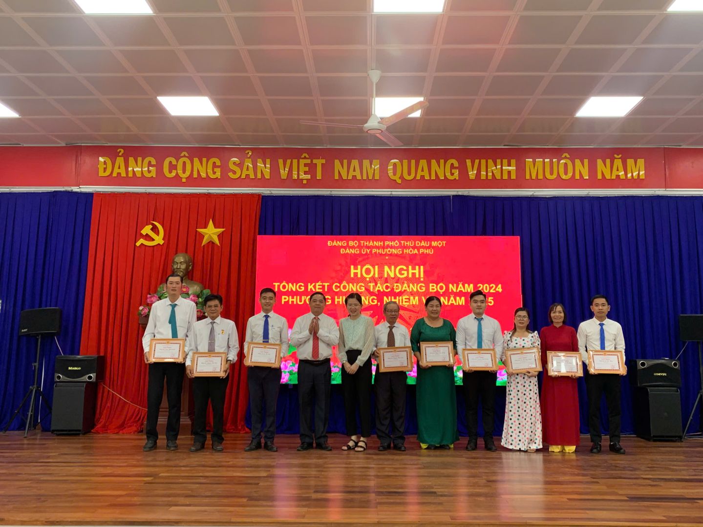 Cũng tại Hội nghị Đảng ủy phường đã nhận cờ của UBND tỉnh Bình Dương tặng nhân dân và cán bộ phường Hòa Phú đã có thành tích xuất sắc dẫn đầu phong trào thi đua cụm các phường thuộc Thành phố Thủ Dầu Một năm 2023 (cụm số 2). Dịp này Đảng ủy phường đã khen thưởng 02 tập thể chi bộ và 53 đảng viên hoàn thành xuất sắc nhiệm vụ năm 2024.