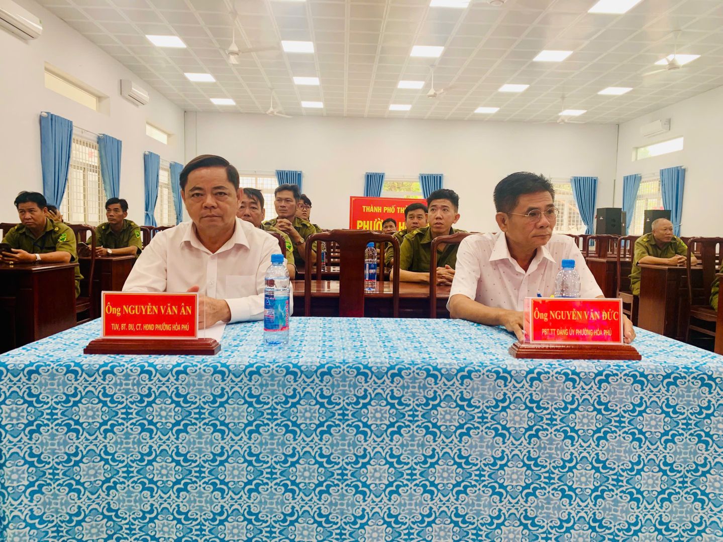 Qua đó, yêu cầu các đồng chí tiếp tục phát huy tinh thần đoàn kết, vai trò nòng cốt, hoàn thành xuất sắc mọi nhiệm vụ được phân công, bên cạnh tăng cường công tác tuần tra và phối hợp tuần tra, kiểm tra thường xuyên, nhằm kịp thời tấn công, trấn áp các loại tội phạm, đảm bảo an ninh chính trị, trật tự an toàn xã hội trên địa bàn phường Hòa Phú.