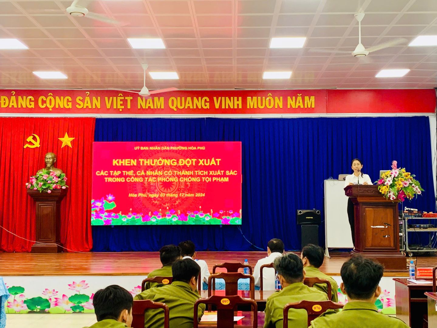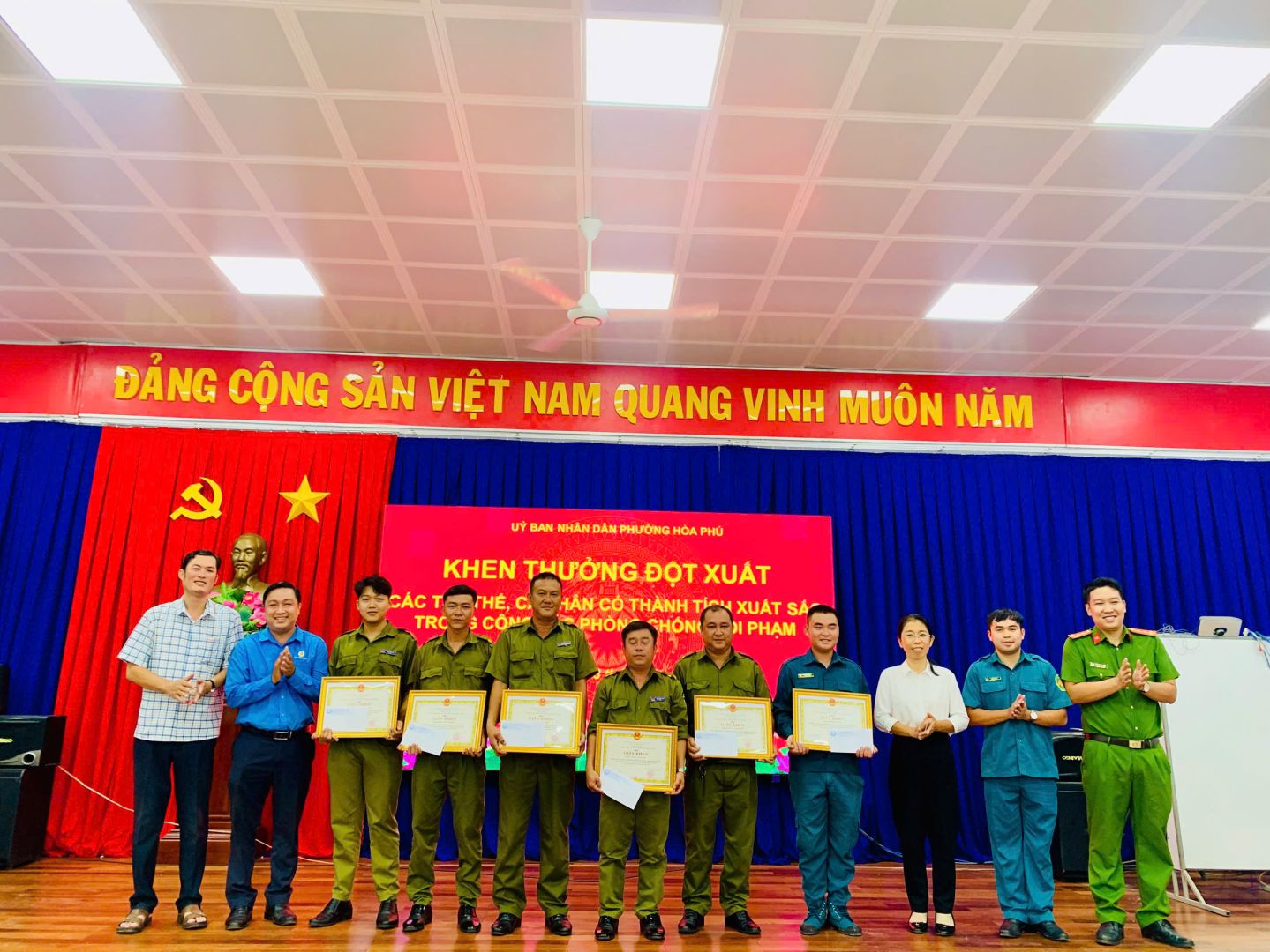 Phường Hòa Phú: Khen thưởng đột xuất các tập thể, cá nhân có thành tích xuất sắc trong công tác phòng chống tội phạm.