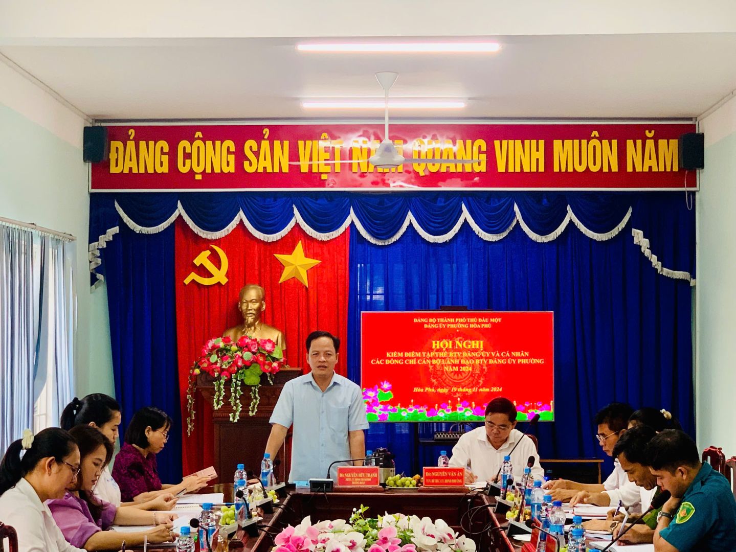 Sáng ngày 19/11/2024, Đảng ủy phường Hòa Phú Tổ chức Hội nghị kiểm điểm tập thể Ban Thường vụ và cá nhân các đồng chí cán bộ lãnh đạo Ban Thường vụ Đảng ủy phường năm 2024.